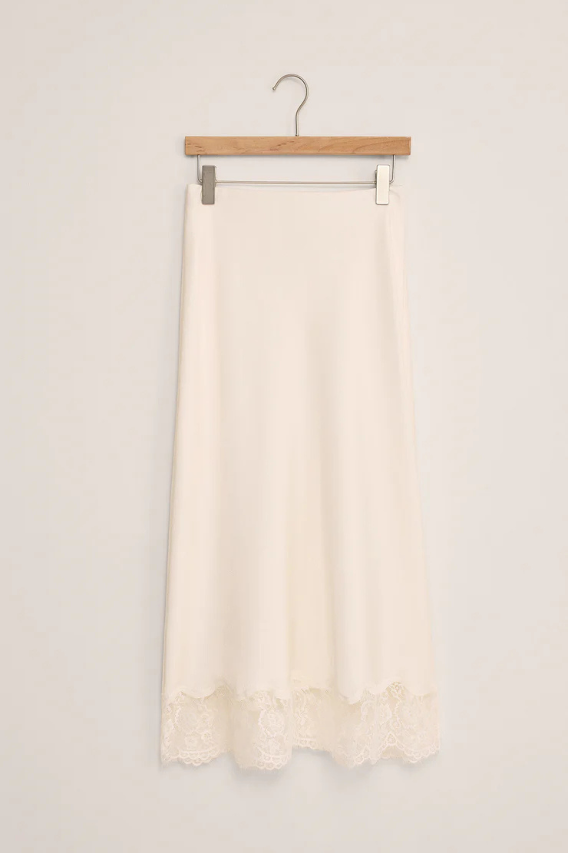 Slip into effortless elegance with this satin midi skirt that does the heavy lifting for you. The high-rise cut flatters while the scalloped lace hem adds just enough flirtation to keep things interesting. Pull it on and go—whether you're heading to holiday celebrations or a night out that calls for something a little more refined. Smooth, lustrous fabric meets comfort in a silhouette that works as hard as you do.