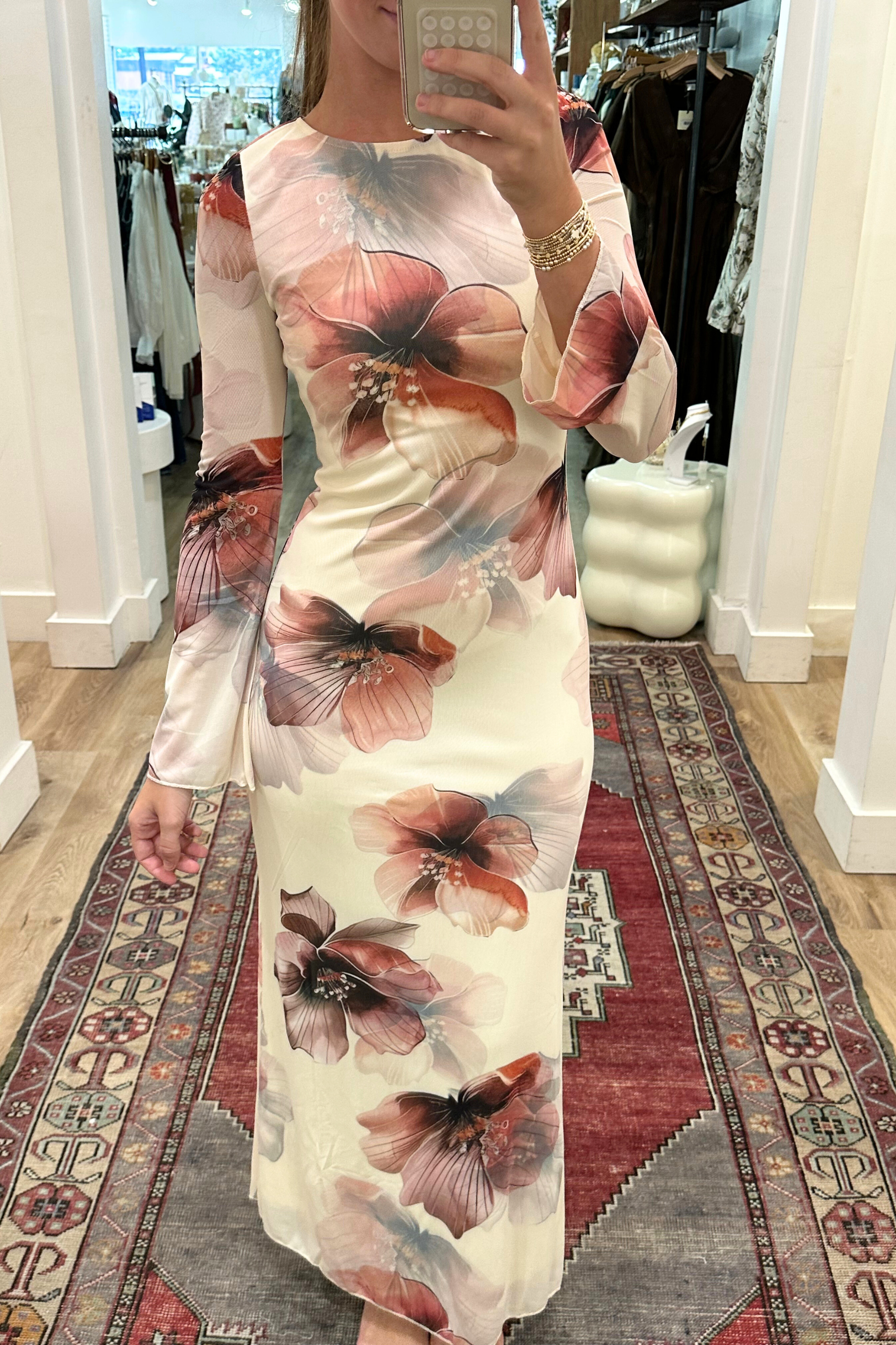 Step into sunshine with the Ariana Floral Maxi Dress—a playful blend of flowing mesh and vibrant blooms. Its bell sleeves add a whimsical touch, while the lined fabric ensures comfort and coverage all day long. The keyhole back adds a flirty peek, making this dress perfect for twirling through garden parties or casual strolls. Embrace effortless elegance with a dress that dances with you!