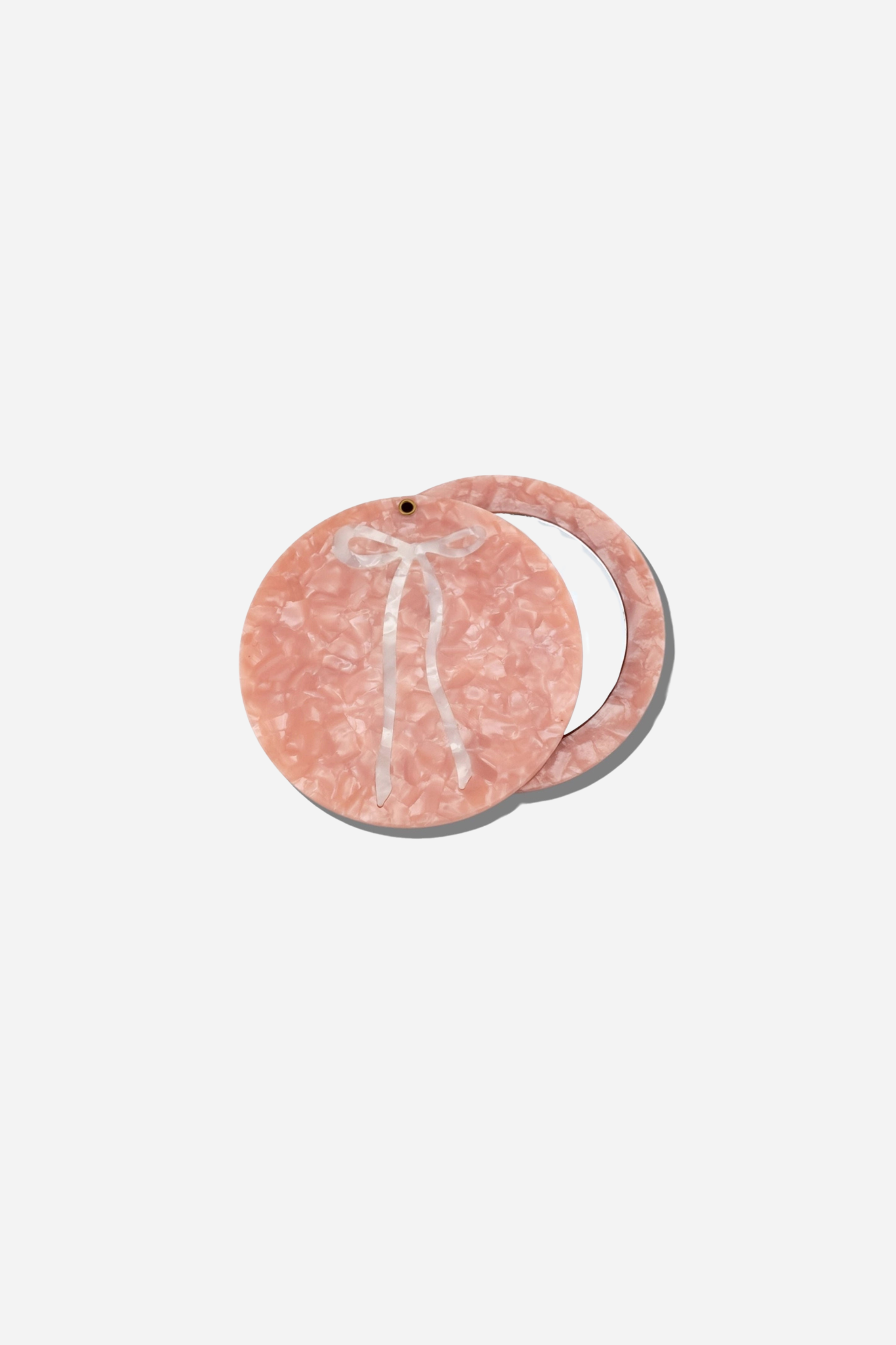 The Compact Mirror is a contemporary handbag essential—intentionally designed in New York City to bring beauty and function to your everyday routine. Each mirror features an original, hand-painted design created by Solar Eclipse artists. This mirror features our Ballet Bow—a graceful nod to movement and femininity. Delicate, dreamy, and designed to twirl right into your routine. Made from our signature biodegradable acetate and packaged sustainably, it’s a timeless piece created to be treasured.