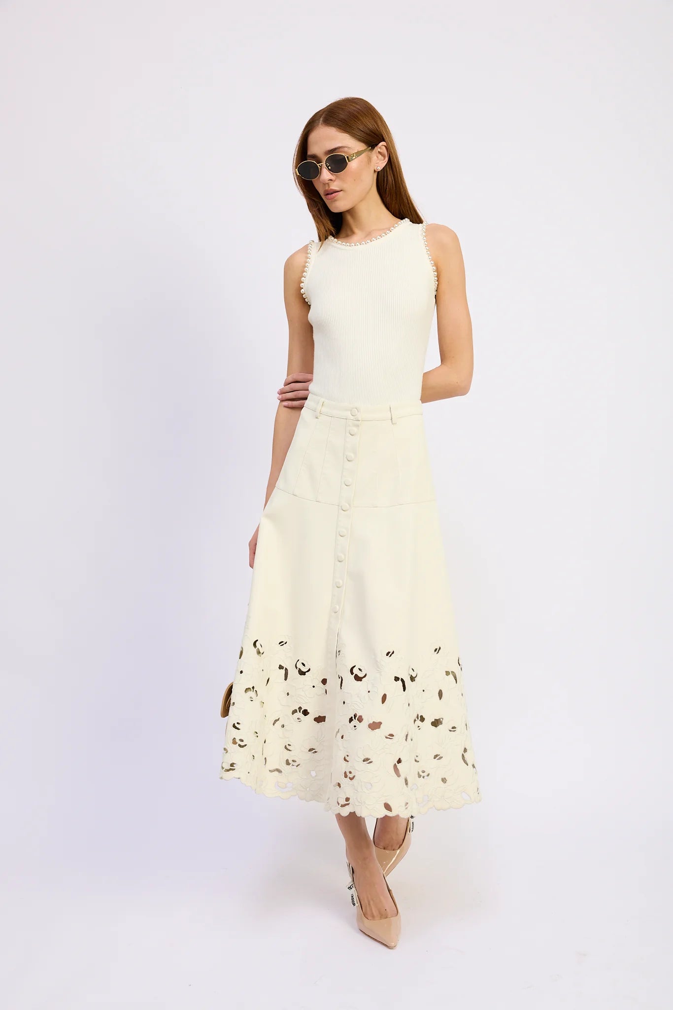 Slip into something that feels as good as it looks. This ribbed knit bodysuit features delicate pearl embellishments that catch the light with every move, adding just the right amount of sparkle to your everyday rotation. Smooth, stretchy fabric hugs your curves in all the right ways, while the timeless silhouette pairs effortlessly with everything from high-waisted jeans to flowing skirts. A little luxury, a lot of versatility.