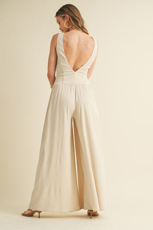 This playful linen jumpsuit features a stretchy fabric for all-day comfort and a chic button-down front. The natural hue pairs perfectly with its daring plunge back, making it a stylish choice for any casual outing or sunny day adventure. Effortlessly cool and easy to wear, it’s your new go-to for laid-back vibes with a twist.