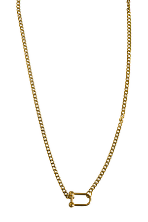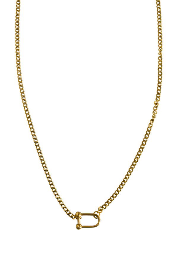 Bold meets minimal in this link-up Necklace — a statement piece that does the most with the least. Featuring a chunky gold chain and an industrial-inspired shackle clasp, this necklace is made for stacking or standing alone!