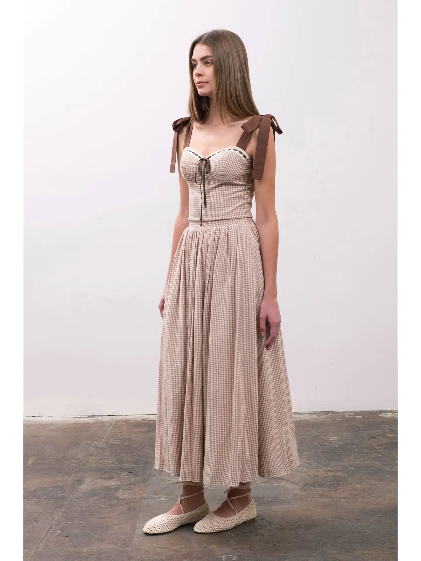 This playful plaid crop top features a flirty sweetheart neckline and sleeveless design perfect for sunny days. Adjustable tie straps and a charming front tie detail let you create your ideal fit while back smocking adds comfortable stretch. Made from soft cotton-viscose with a smooth polyester lining, it keeps you cool and comfy. A woven, lined design blends style with ease, making this top a fun, versatile addition to your warm-weather wardrobe.