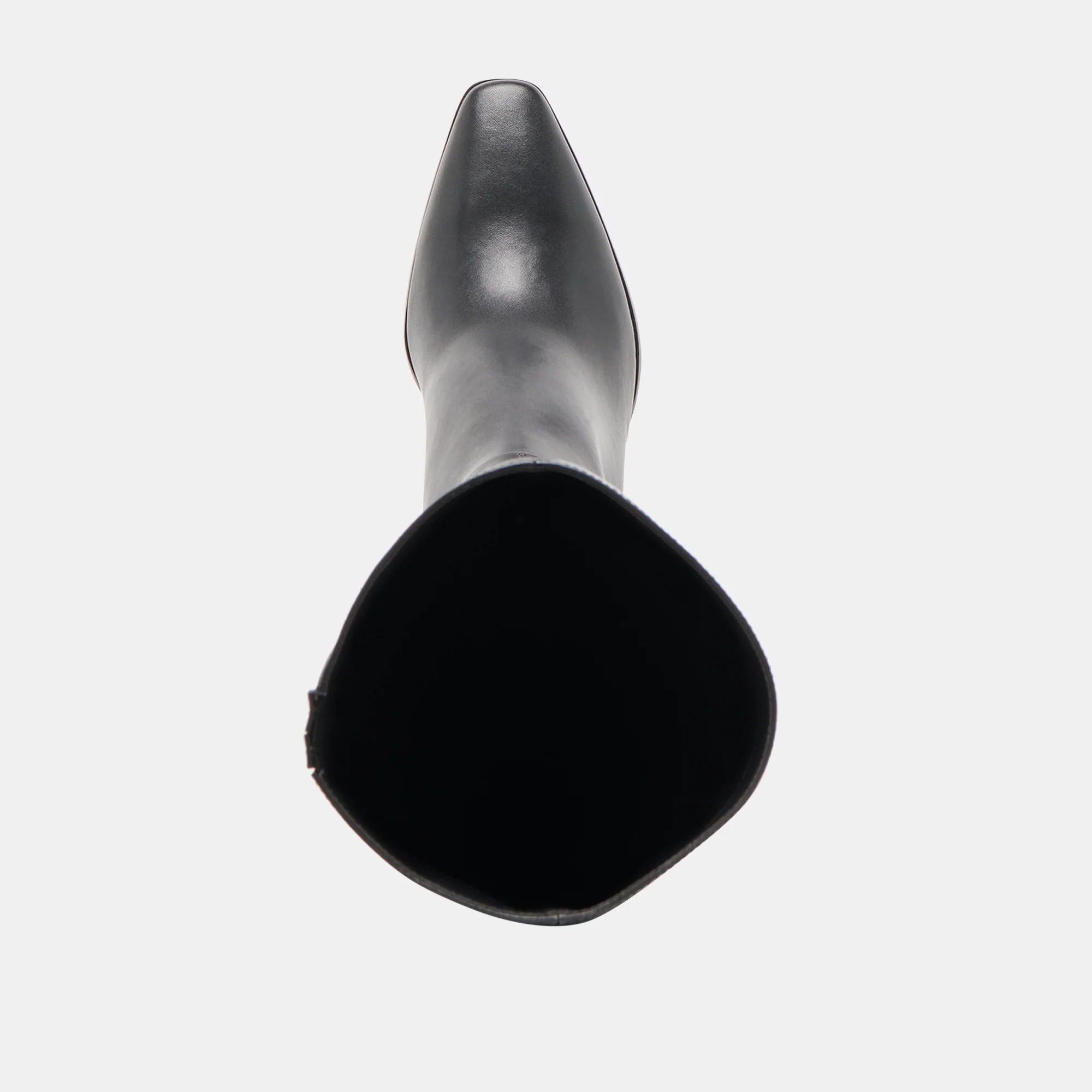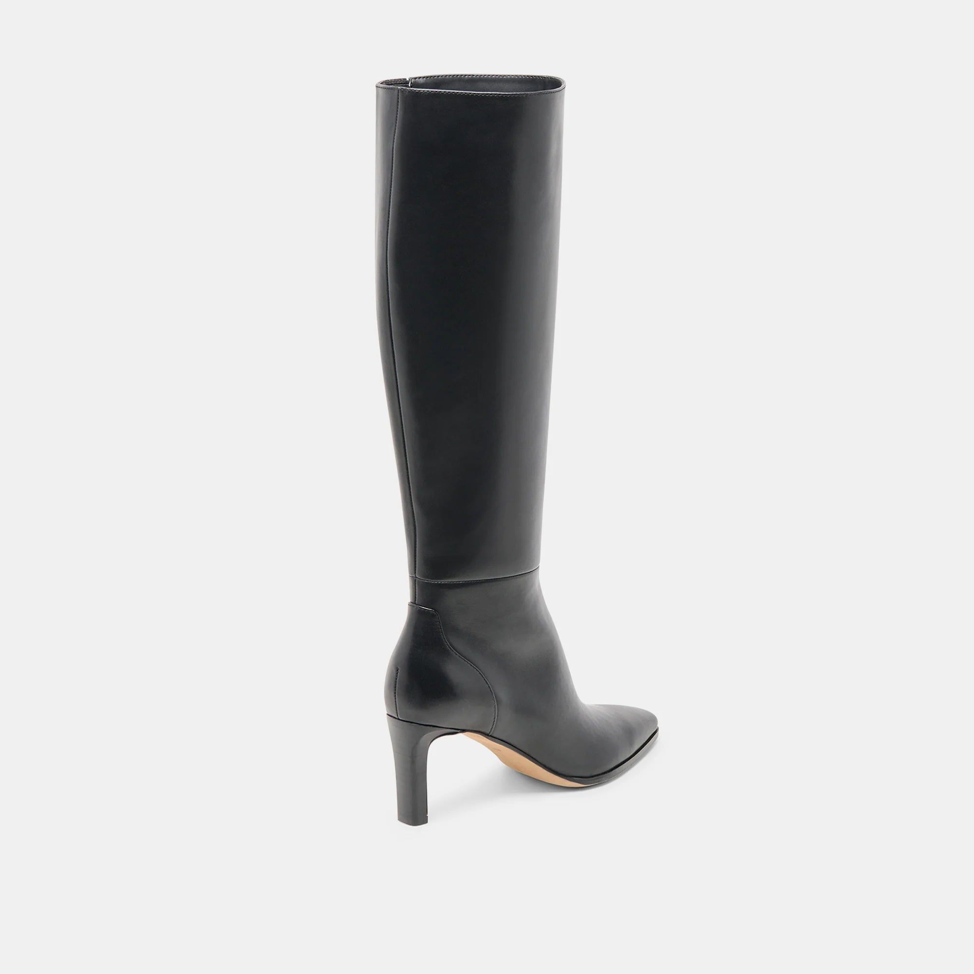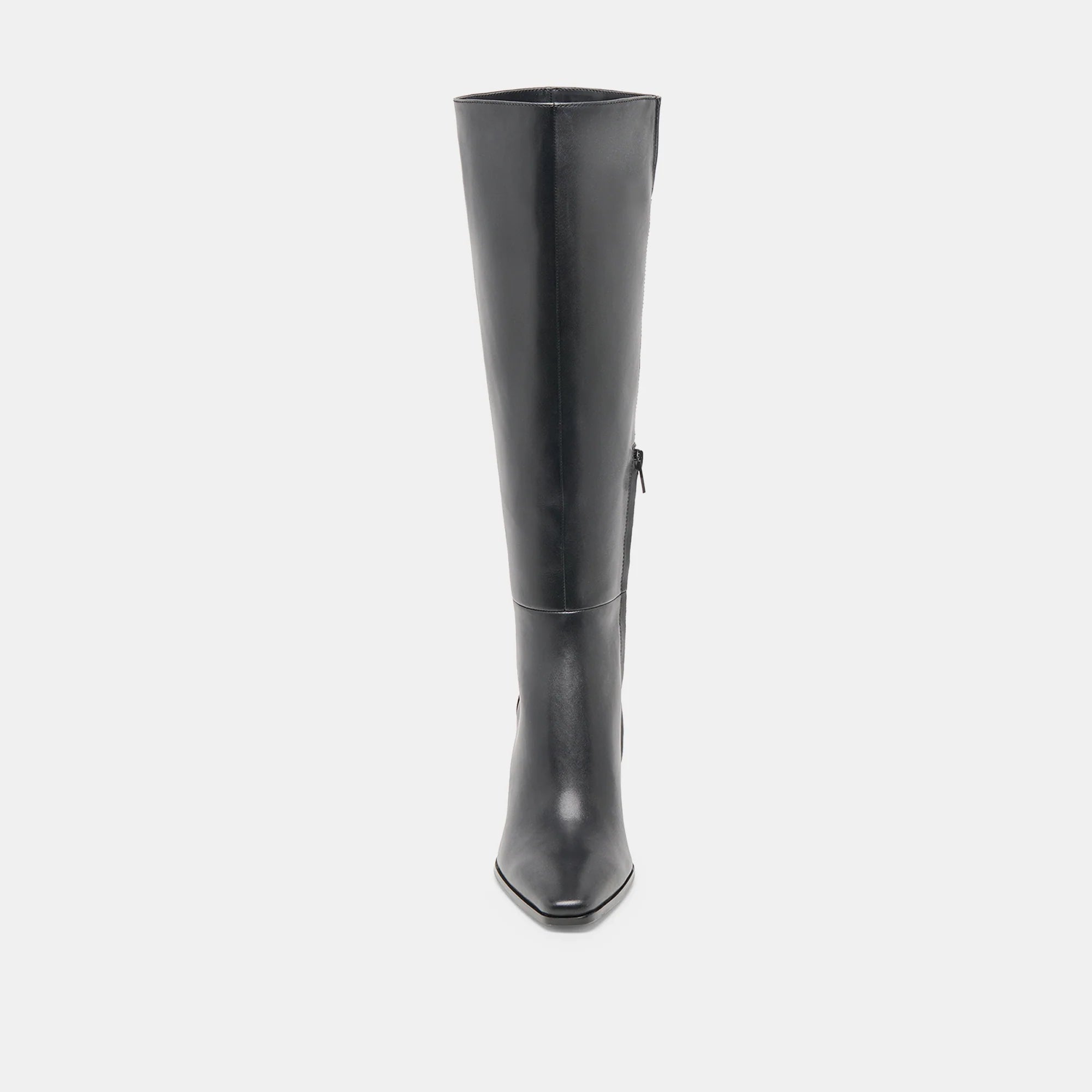 A classic and undeniably timeless staple. EMMI’s heeled knee-high silhouette in black or brown features a sleek pointed toe. This is the polished leather boot you will wear over and over again.