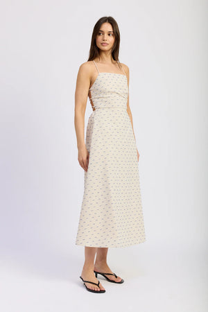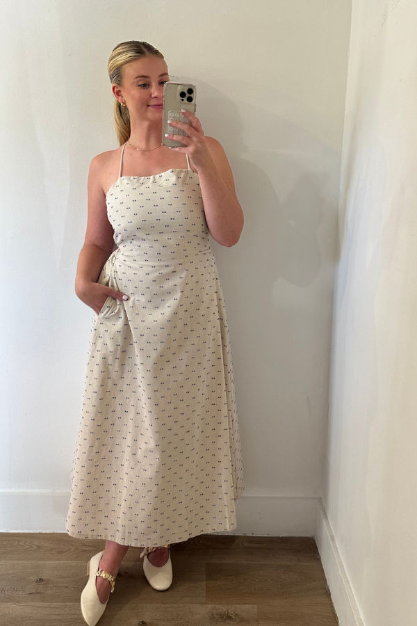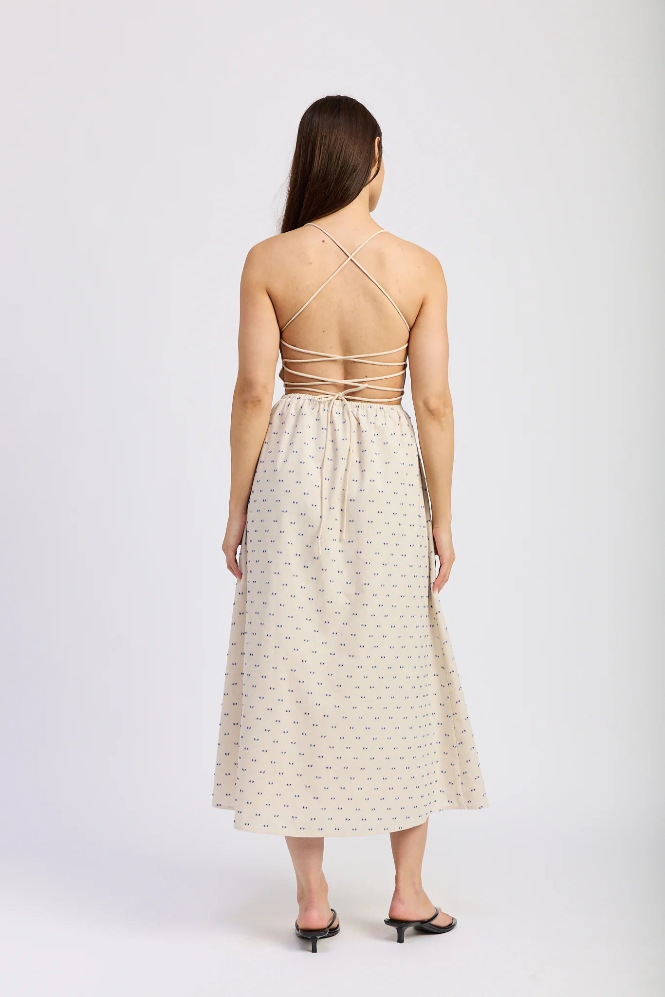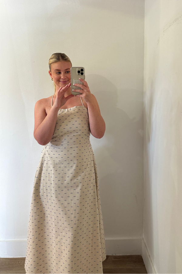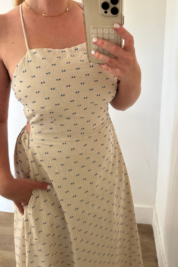 Step into sunshine with the Donatella Maxi Dress, featuring a chic square neckline and a flirty lattice back that adds just the right amount of intrigue. Its flowing silhouette lets you move with ease and grace, making it your go-to dress for playful days and dreamy evenings.